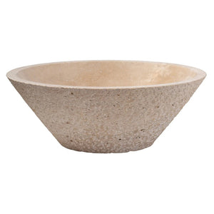 Waschbecken aus hellbeigem Travertin in V-Form, innen geschliffen und außen sandgestrahlt (Durchmesser) 41 cm (Höhe) 16 cm