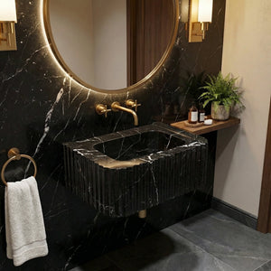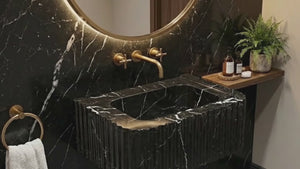 The smooth polished interior and exterior ensure this sink will be the focal point of your bathroom decor. The breathtaking marble from Turkey will blend into any setting. These half-round, wall-mount vessel sinks for bathrooms are not only convenient for everyday use but also an ornament for your living space. The artisanal construction ensures that no two sinks will be exactly identical.